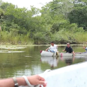 With a full belly and soul and after relaxing under the thatch huts by the lagoon, we will board your riverboats for the comfortable, peaceful water journey back to your launch, and then on to Belize City.